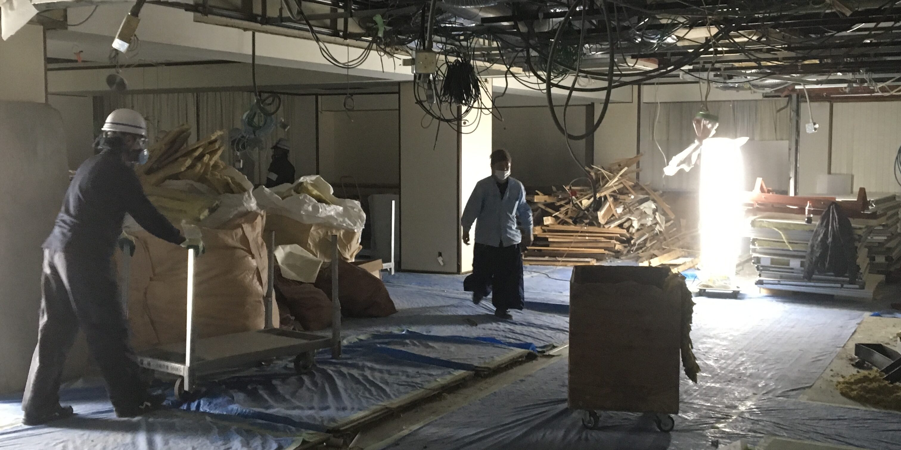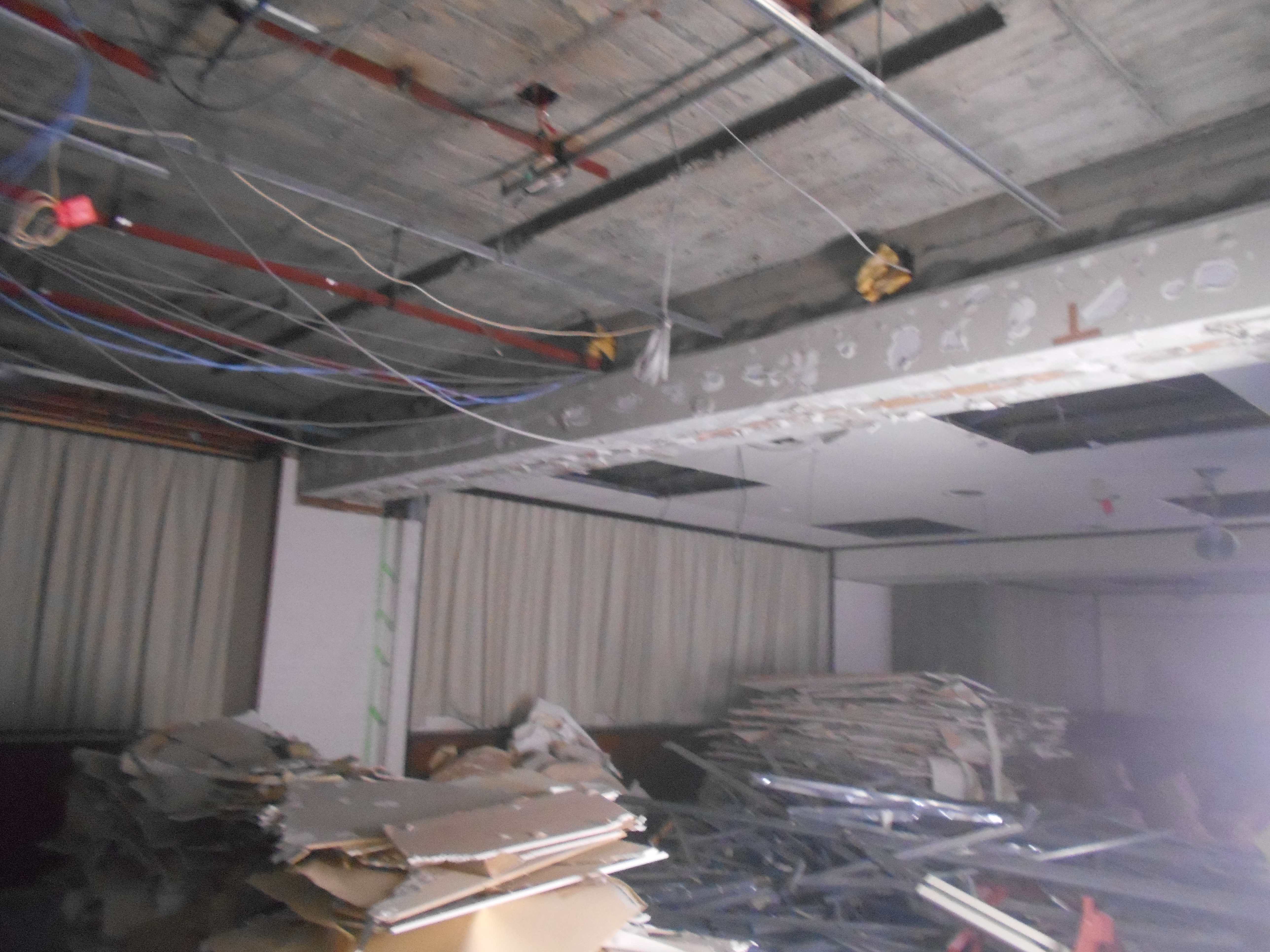 ・5階 天井、間仕切解体、各所集積、スライディングウォール解体