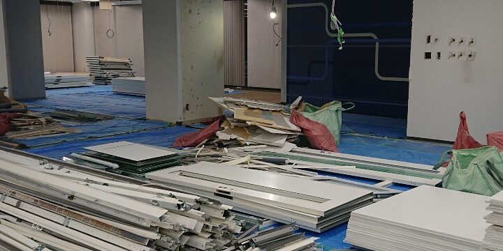 インフォメーションビルオフィス東京都江東区解体工事事例【11月3日】 ・スライディングウォール撤去 ・ガラス取外し ・間仕切パーティション撤去 【11月6日】 ・パーティション撤去 ・スライディングレール撤去 【11月7日】 ・長物切断 ・天井撤去 Post navigationPreviousPrevious post:【新小岩 テイクアウト寿司店 改装工事に伴う内装解体工事】NextNext post:【八潮市 工場門扉更新工事】