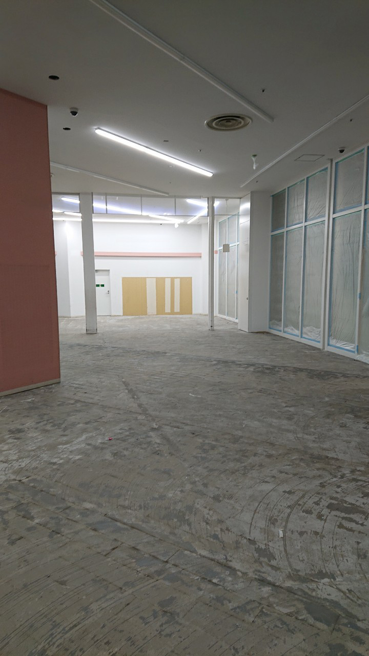 インフォメーション商業施設大和市神奈川県解体工事事例【1月31日・2月6日】 ・資材搬入 ・サッシ面 マスカー養生 ・サッシ面 カッティングシート撤去 ・床塩ビタイル撤去 【2月7日】 ・垂れ壁 見切り撤去、クロス剥がし ・ボード貼り替え部解体 ・各所サイン撤去 【2月8日】 ・各所クロス撤去 ・ボード補修部解体 ・Cチャン柱解体 【2月9日】 ・床スクレーパー掛け ・床アンカー処理 【2月10日】 ・床スクレーパー掛け 【2月13日】 ・スクレーパー掛け ・資材回収 ・ゴミ出し Post navigationPreviousPrevious post:【世田谷区 北沢 飲食店 内装解体工事】NextNext post:【千葉県市原市 商業施設内物販店 原状回復工事】