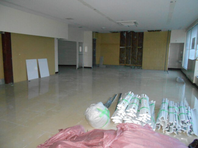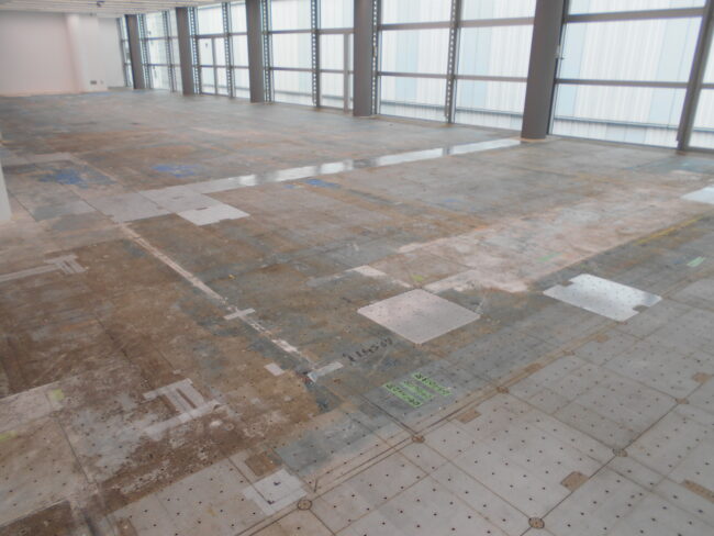【8月2日~10日】 ・5階6階 残材搬出 ・各所養生及び清掃 ・仮設材搬入 ・6階 枠周り床斫り 【8月16日】 ・6階 タイルカーペット剥がし ・6階 OA撤去 ・ガラス養生撤去 ・残材搬出  …