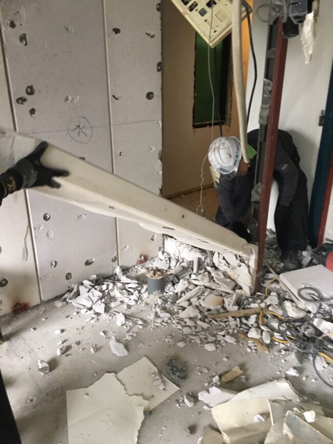【2月18日】 ・6Fエントランス、1F通路養生 ・パーテーション解体、スライディングウォール解体 ・各解体材小切り ・ゴミ出し、各所清掃 ・トイレ扉及びパーテーション解体 【2月19日】 ・6Fスライディ…