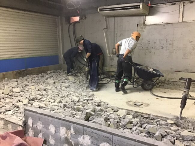 【10月26日】 ・間仕切解体 ・天井解体 ・壁解体 ・各所集積及び清掃 【10月27日】 ・天井配線処理 ・ダクト撤去 ・GL撤去 ・外部看板撤去、コーキング処理 ・ゴミ出し ・各所集積及び清掃 &nbs…
