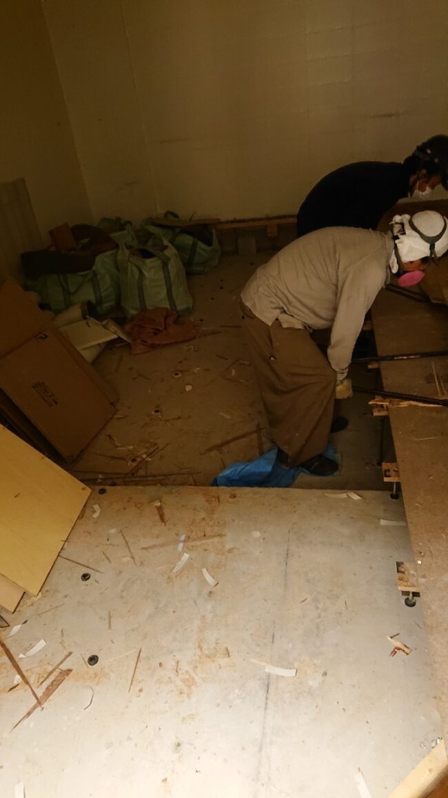 【10月20日】 ・残置物撤去、厨房器具撤去 ・木造作撤去 ・床撤去 【10月21日】 ・床撤去 ・ゴミ出し 【10月22日】 ・床撤去 ・壁ケイカル撤去 ガスメーター及びメータ…
