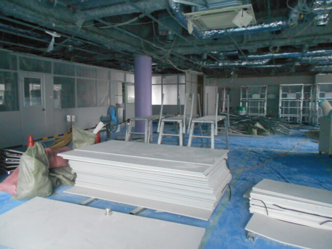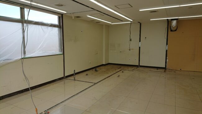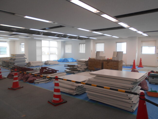 【6月15日】 ・間仕切撤去 ・天井ボード撤去 【6月16日】 ・壁、天井撤去 【6月17日】 ・木床撤去 ・産廃排出 【6月22日、23日】 ・床Pタイル撤去 ・Pタイル撤去 …