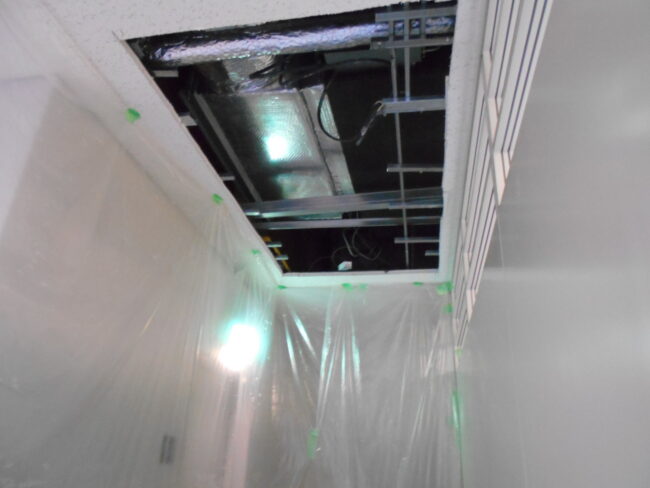 【2月18日】 ・3階2階 通路及び解体範囲養生 ・天井開口、下地撤去 ・各所集積及び清掃 無料お見積もり・お問い合わせ