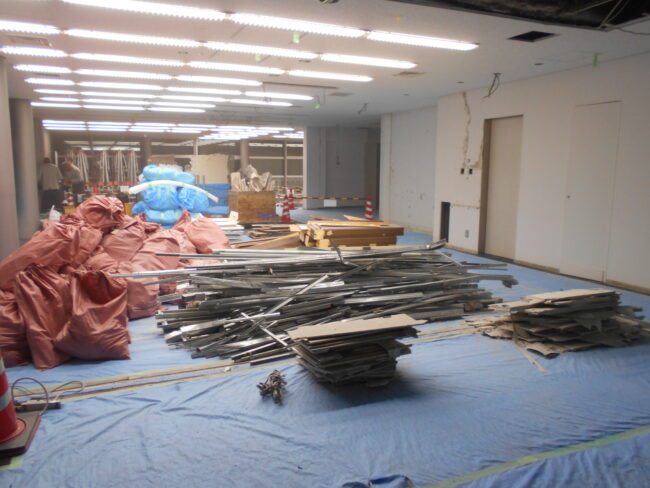 【9月17日】 ・間仕切解体 ・壁面解体 ・各所集積及び清掃 【9月18日】 ・間仕切解体 ・天井ボード下地解体 ・各所集積及び清掃 ・ガラス面プラベニ養生 【9月19日】 ・天井下地撤去 ・…