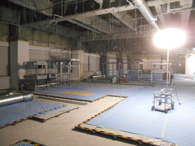 【5月7日】 ・間仕切解体 ・外周解体 【5月8日】 ・天井解体 ・二次側配線撤去 ・天井内設備撤去 【5月9日】 ・床タイル斫り ・床モルタル斫り 【5月20日】 ・床モルタル…