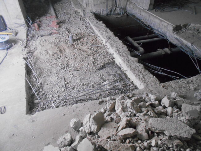 【9月18日】 ・床タイル斫り(部分) ・壁タイル全面斫り ・天井一部開口 ・一部天井落とし 【9月21日】 ・1階ロビー 天井撤去 ・1階事務室 天井一部撤去 ・その他各所天井撤去 【9月2…