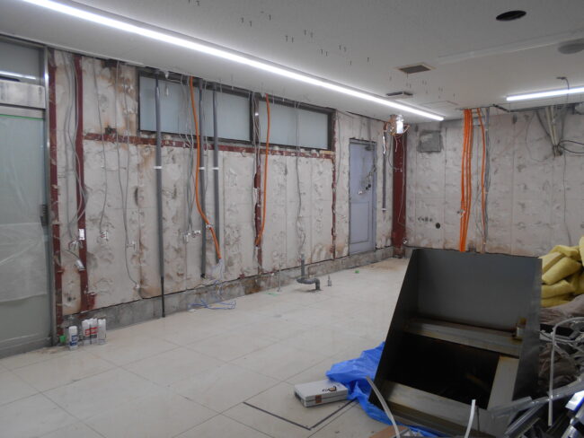【11月27日】 ・間仕切解体 【11月28日】 ・間仕切解体 ・ウォークインクーラー解体 ・一部天井解体 ・天井内ダクト撤去 【11月29日】 ・一部天井解体 ・天井内ダクト撤去 ・外部 吹…