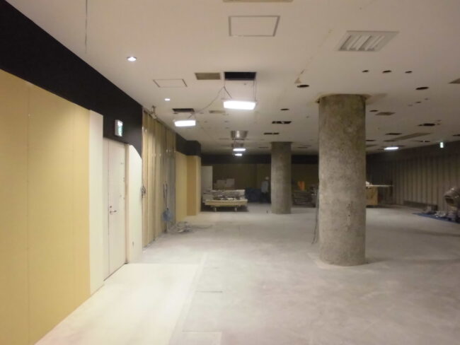 【2月7日】 ・間仕切り解体 ・壁面ガチャ柱、棚類撤去 ・床撤去 ・各所清掃及びゴミ出し 【2月8日】 ・間仕切り解体 ・壁解体及びビス抜き ・柱巻解体 ・床塩ビ撤去 ・各所清掃及びゴミ出し …