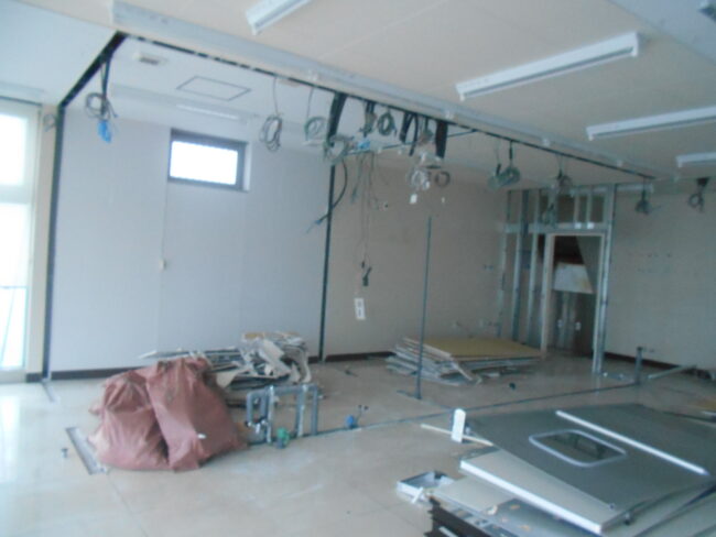 【3月6日】 ・間仕切り撤去 ・外周壁撤去 ・Pタイル撤去 ・天井ボード撤去 ・下り天井撤去(LGS+PB) ・各所集積及び清掃 【3月7日】 ・天井撤去 ・Pタイル撤去 ・解体材搬出 ・各所集積及び清掃 …