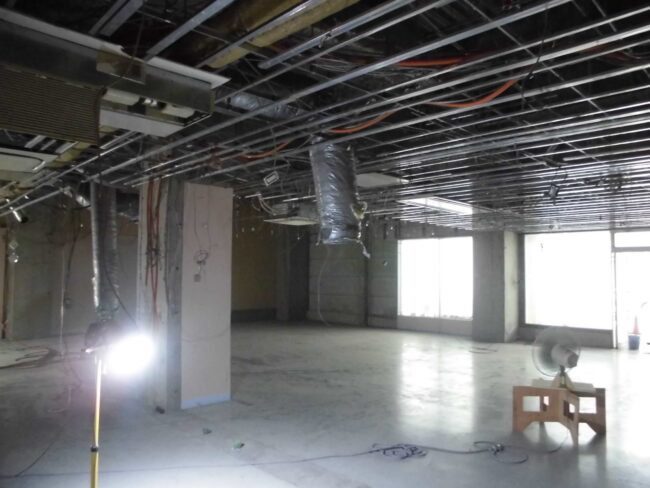【7月20日、21日】 ・仮囲い設置 ・ファサード、サイン撤去 ・リースラインテープ剥がし ・吊看板撤去 ・ライティングレール撤去 ・壁面クロス剥がし 無料お見積もり・お問い合わせ