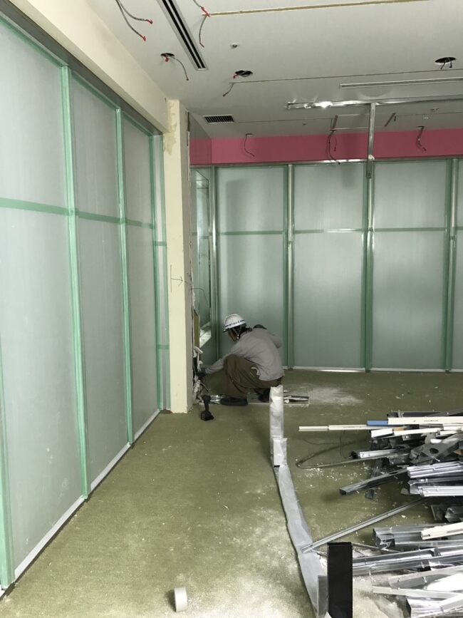 【4月21日・22日】 ・什器解体 ・全面ガラス、間仕切り、ふかし壁解体 ・各所養生及びゴミ出し 無料お見積もり・お問い合わせ