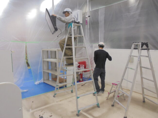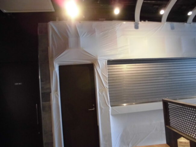 【5月19日】 ・カーテン養生 ・天井吊棒撤去及び補修 ・床清掃仕上げ 無料お見積もり・お問い合わせ