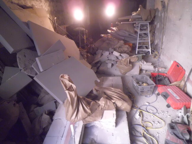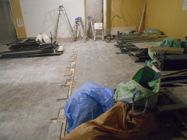 【2月5日】 ・造作棚、ドア枠解体 ・壁面、間仕切り解体 など 【2月6日】 ・共用部、バックヤード養生 ・ゴミ出し ・造作壁の解体、各所集積及び清掃 【2月7日】 ・通路、バックヤード養生 …