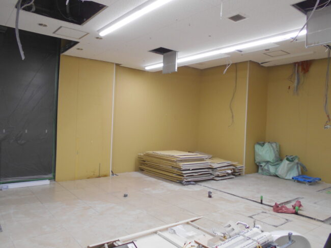 【5月21日】 ・間仕切解体 ・壁解体 ・天井解体 【5月24日】 ・天井下地撤去 ・天井巻下がり撤去 ・二次側配線撤去 【5月25日】 ・天井下地撤去 ・二次側配線撤去 …