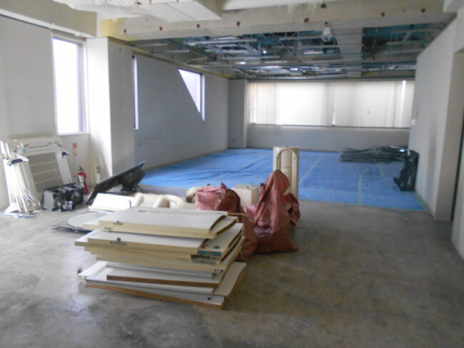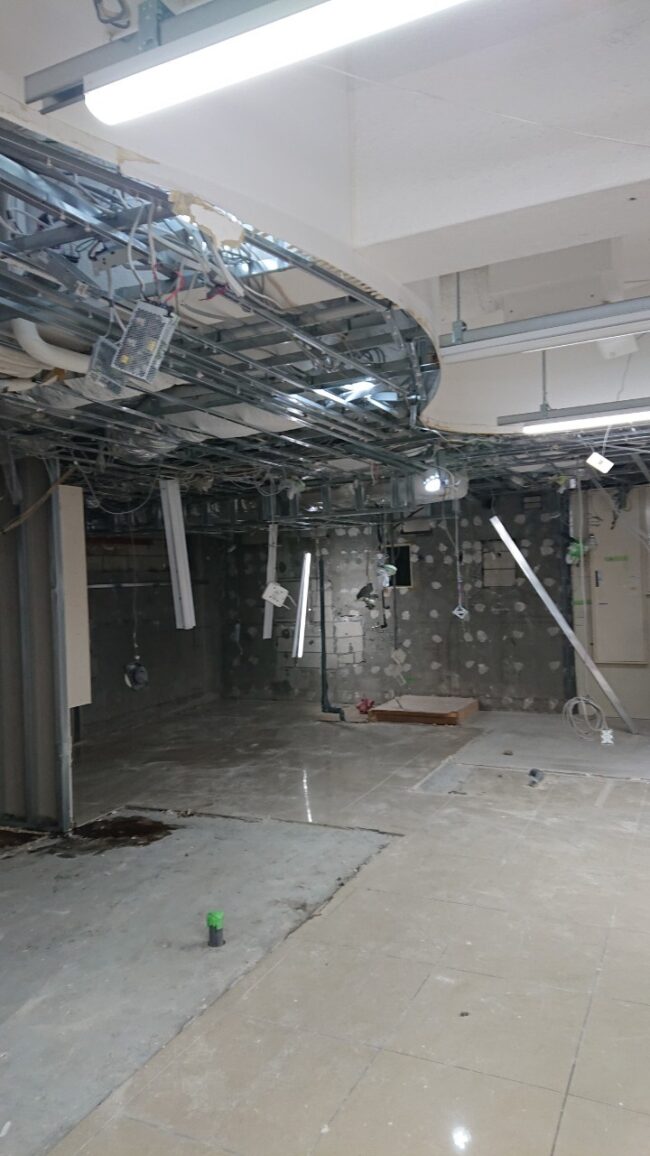【5月21日】 ・間仕切解体 ・壁解体 ・天井解体 【5月24日】 ・天井下地撤去 ・天井巻下がり撤去 ・二次側配線撤去 【5月25日】 ・天井下地撤去 ・二次側配線撤去 …