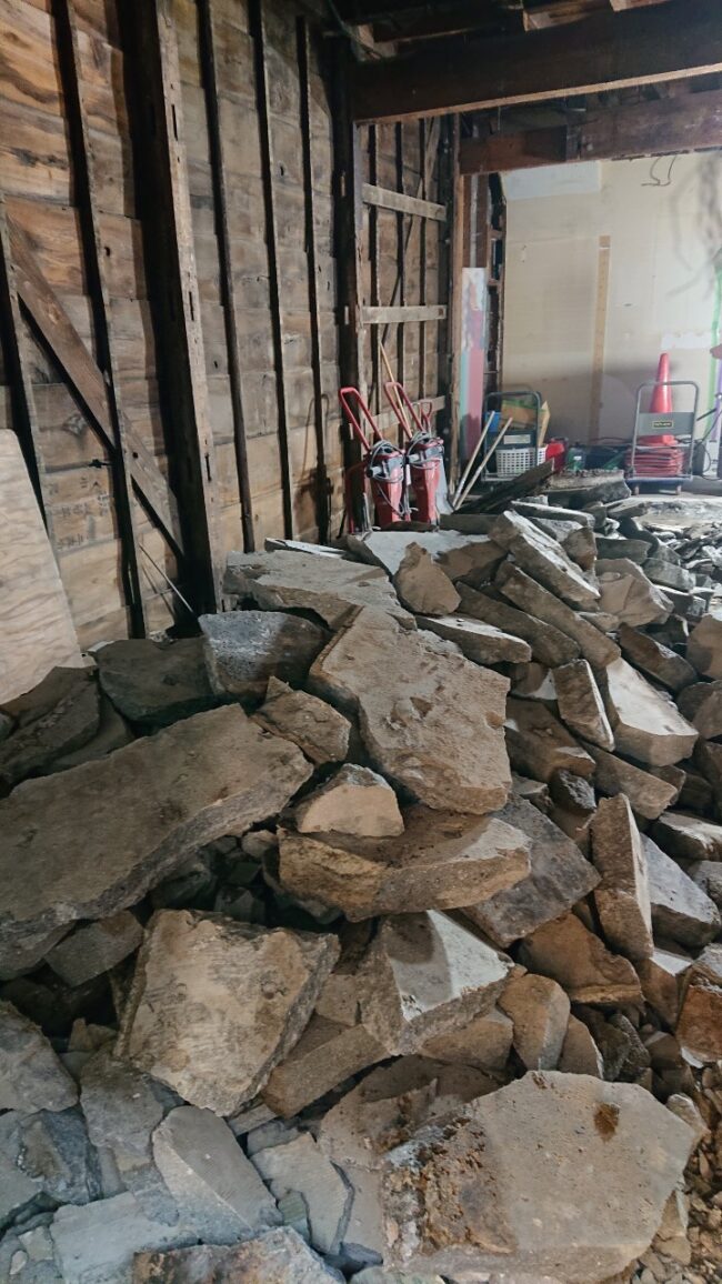 【10月26日】 ・造作及び什器解体 ・外周壁解体 ・天井解体 【10月27日】 ・外周壁撤去 ・天井撤去 ・床CF撤去 ・Pタイル撤去 ・看板撤去 ・ゴミ出し 【10月28日】 ・土間斫り …